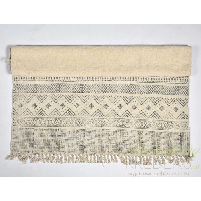 Prostokątny dywan Belldeco został utkany z 100% bawełny. Dywan z etnicznym wzorem w beżowo-szarym kolorze będzie doskonale sprawował się w salonie lub w przejściu pomiędzy pokojami. Dywany Belldeco możesz również rozłożyć pod stolikiem kawowym i w ten sposób zabezpieczyć panele przed ścieraniem. Marka Belldeco to producent, który zna się na stylowych wnętrzach.