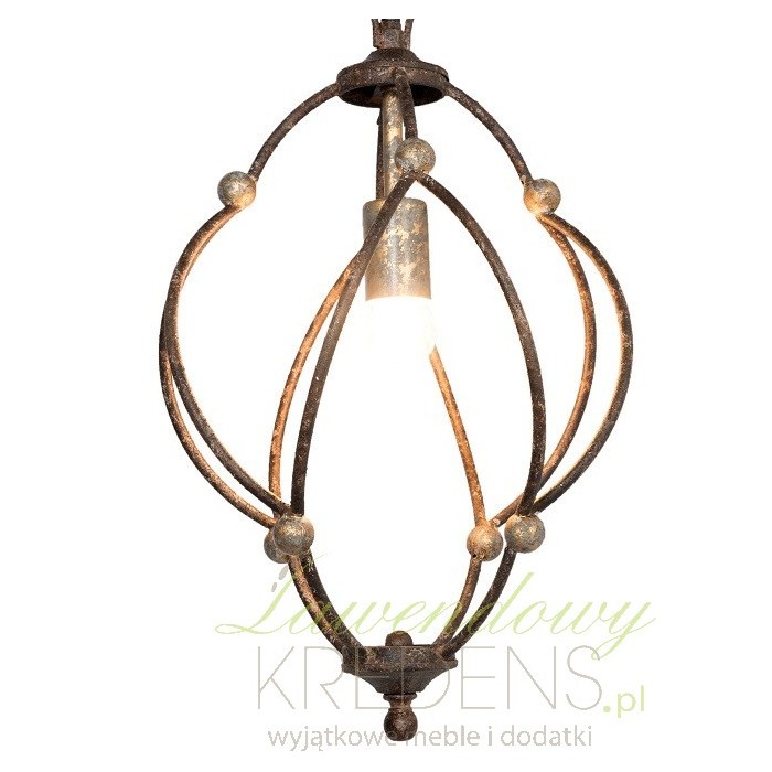Lampa Vintage z metalu ma charakterystyczny klosz, jedno źródło światła i wiele antycznych postarzeń.
