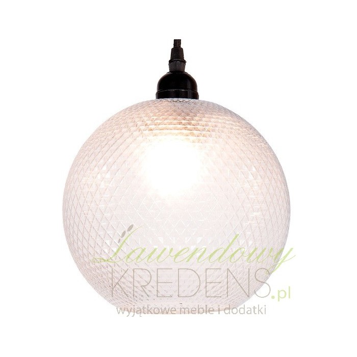 Lampa szklana Clayre&Eef to stylowa lampa wisząca w kształcie kuli. Lampa kula jest doskonałym elementem oświetleniowym wykonanym ze szkła z ciekawą fakturą w drobne romby. Szklane lampy to sposób na atrakcyjne i optymalne oświetlenie kuchni, a nawet łazienki. Sprawdź również inne modele oświetlenia z kolekcji holenderskiej marki Clayre&Eef.