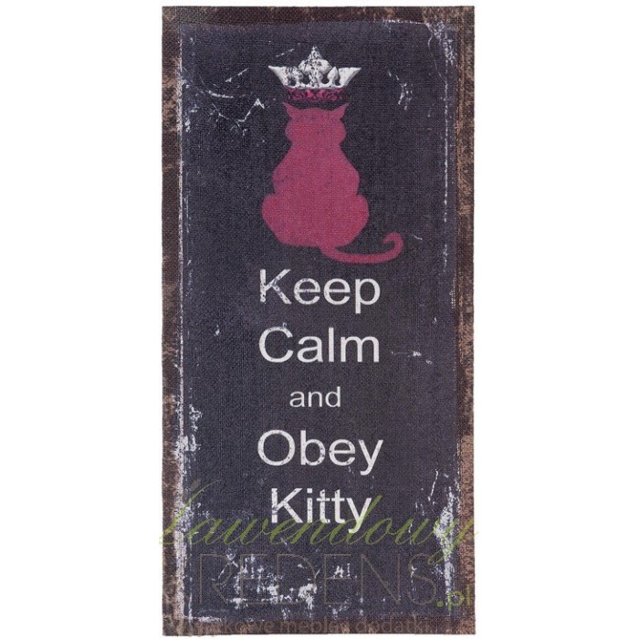 Obrazy z kotami można spotkać nie tylko w domach posiadaczy czworonogów ale również w pokojach nastolatków, którzy mimo braku zwierząt w domu darzą je ogromną sympatią. Obraz retro w ciemnym kolorze nabiera charakteru dzięki ciemnemu tłu, na którym znajduje się różowy kot w koronie i napis "keep calm..". Duży obraz z napisami ciekawie postarzono białymi przetarciami. By urządzić niebanalne wnętrze postaw na oryginalne dekoracje ścienne takie jak obrazy w stylu retro!