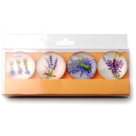 Cztery urocze magnesy z lawendą idealne do ozdoby kuchni czy lodówki w twoim domu!