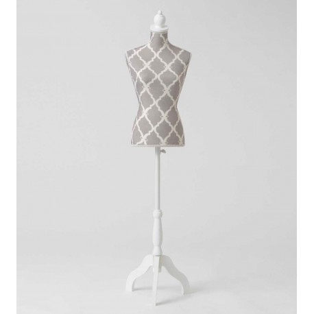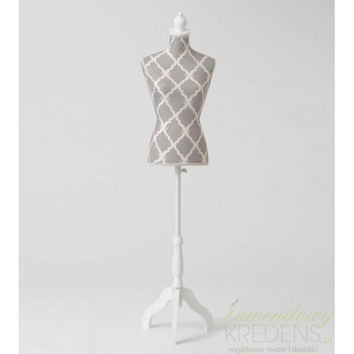 Manekiny ozdobne idealnie sprawdzą się w każdym butiku czy sklepie z odzieżą. Manekin ozdobny pochodzenia francuskiego ma szary kolor i biały, elegancki wzór. Stoi na stabilnej wysokiej nodze. To bardzo elegancki dodatek prowansalski do wnętrz.