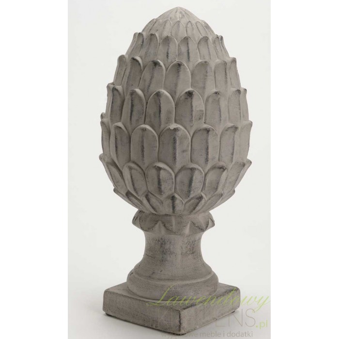 Karczoch ozdobny w odcieniach szarości został wykonany z cementu i oryginalnie ozdobiony przetarciami na listkach.