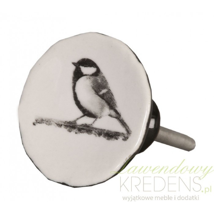 Okrągła gałka meblowa firmy Clayre & Eef ze ślicznym czarno-białym motywem ptaszka!