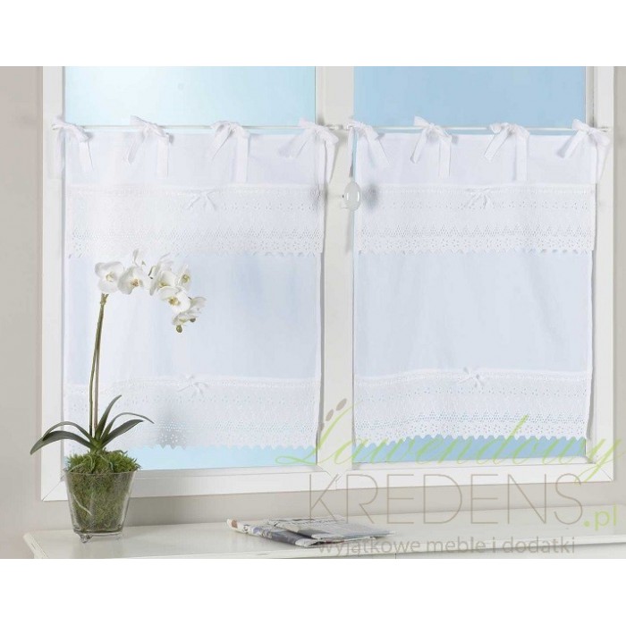 Biała zazdrostka prowansalska pochodzenia francuskiego z ozdobną koronką!