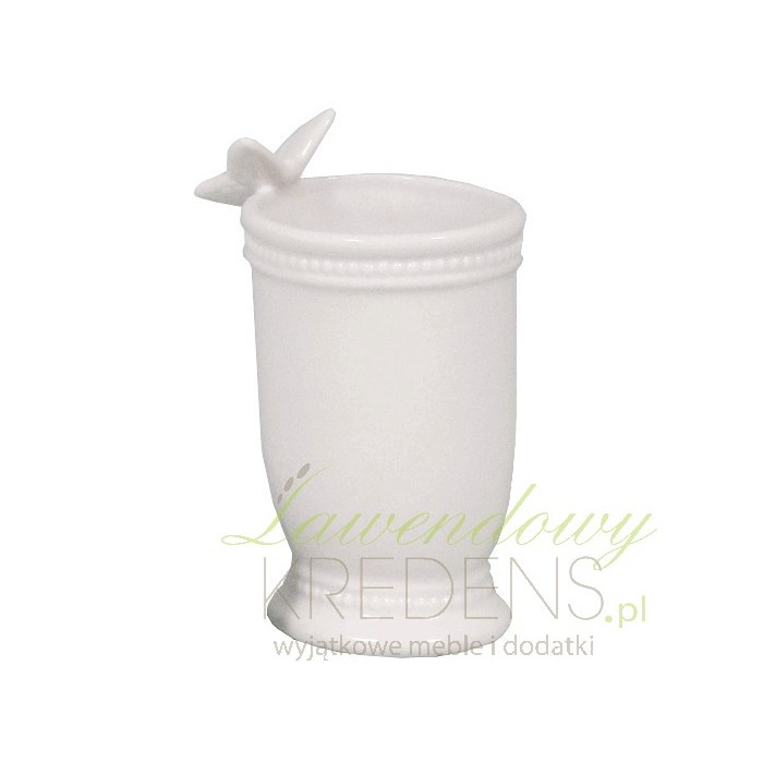 Prześliczny kubek do łazienki, którego styl prowansalski widoczny jest gołym okiem dzięki motylkowi na krawędzi!