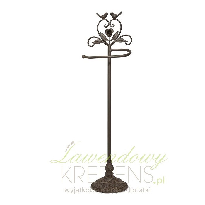 To dodatki do łazienki wyrażają jej charakter, dlatego wybierając je warto zainwestować w produkty w odpowiednim stylu. Prowansalski stojak na papier toaletowy doskonale oddaje klimat stylu prowansalskiego. Wykonany został z metalu i ozdobiony dwoma małymi ptaszkami i listkami. Pełne designu wygięcia i ciemnobrązowa kolorystyka oraz ciekawe zdobienia to wyjątkowa i inspirująca dekoracja wnętrza.