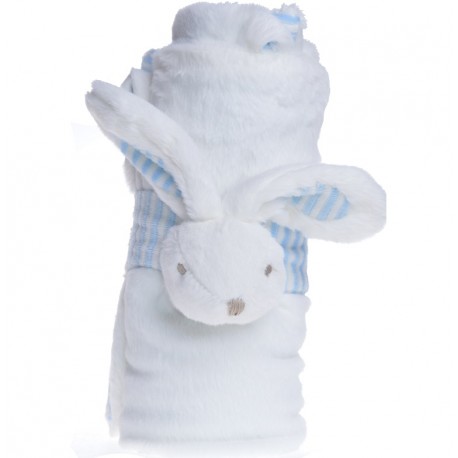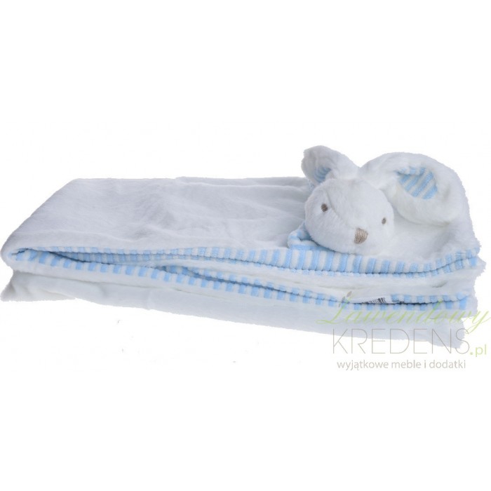 Kocyk dziecięcy w jasnym kolorze posiadający ozdobnego królika. Wyjątkowe kocyki dziecięce wywołają usmiech u małego jak i u dużego człowieka.