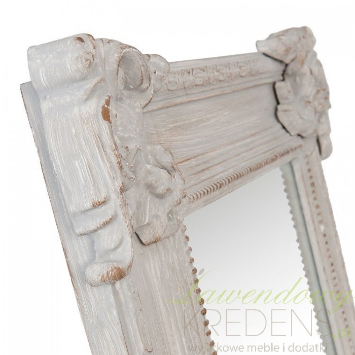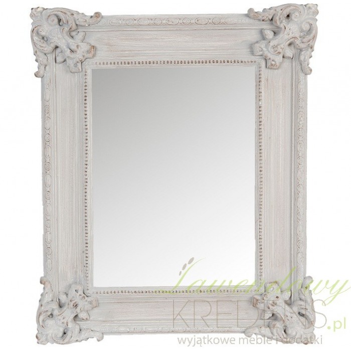 Piękne lustro w stylu prowansalskim z kapitalną ramą z rzeźbieniami w każdym z czterech rogów.