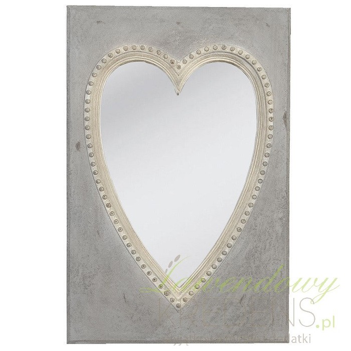Wspaniale prezentujące się na ścianach w każdym kolorze lustro prowansalskie zostało wykonane w kształcie serduszka i otoczone drewnianą ramą.