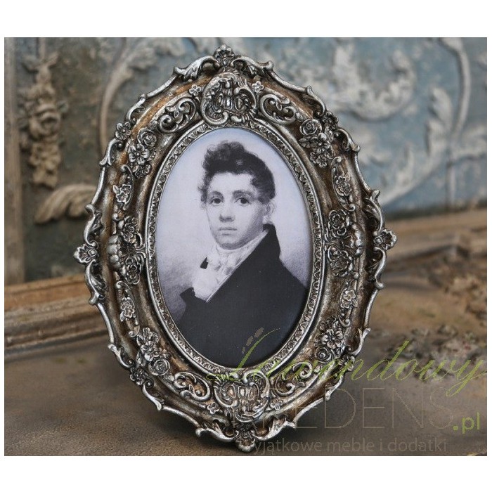 Ramka na zdjęcia Chic Antique utrzymana jest w barwie lekko pordzawionego srebra. Dekoracyjny, owalny kształt został połączony z postarzeniami co razem odzwierciedla jej antyczny styl. Ramka doskonale zaprezentuje się ustawiona w salonie na półce lub komodzie. Świetnie nadaje się do wyeksponowania zdjęć portretowych.