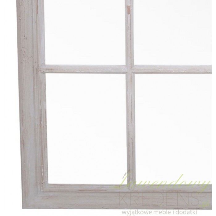 Lustro prowansalskie wykonane jest z dobrej jakości drewna i tafli lustra. Lustro okno podzielone jest na wiele różnej wielkości kawałków lustra, które razem tworzą jedną całość. Lustra w stylu prowansalskim świetnie wyglądają w salonie, kuchni czy też łazience.