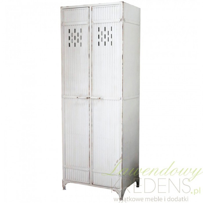 Metalowa szafa produkcji renomowanej firmy Chic Antique! Szafa metalowa jest w kolorze kremowym i ma przecierane brzegi, które nadają jej charakteru. Szafa jest wysoka, dlatego pomieści nawet te najbardziej uciążliwe przedmioty lub najgrubsze ubrania. Praktyczne meble metalowe to niestandardowe ale piękne rozwiązanie do Twojego wnętrza!
