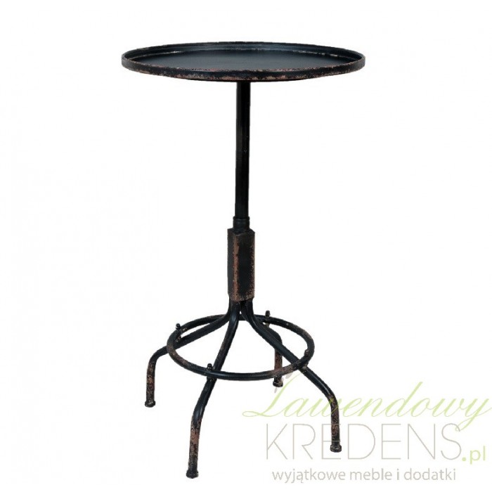 Cały czarny, z celowo zaznaczonymi przetarciami widocznymi na krawędziach blatu stolik loft. To typowy mebel z kolekcji loft, który ma przy podstawie cztery nogi wzmocnione okragłym pierścieniem. Okrągły stolik metalowy może służyć zarówno ozdobie wnętrza jak i praktycznemu wykorzystaniu. Meble metalowe od Clayre&Eef polecamy wybrać w zestawie z dodatkami w stylu prowansalskim!