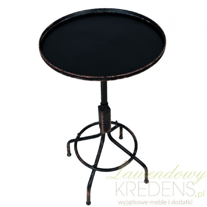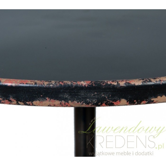 Czarny stolik metalowy w stylu loft wykonany z metalu w kolorze czarnym, wzbogacony licznymi odpryskami.