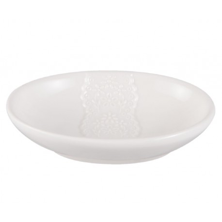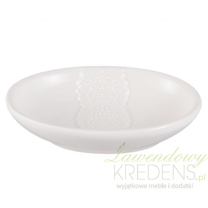 Biała i owalna mydelniczka prowansalska firmy Clayre & Eef z cudownymi dekoracyjnymi kwiatuszkami!