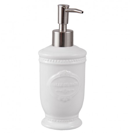 Pojemnik na mydło firmy Clayre & Eef wykonany jest z wysokiej klasy ceramiki w kolorze białym. Dozownik do mydła jest bardzo elegancki i stylowy. Posiada delikatny ozdobny napis Salle De Bain i wypukłe koraliki. Dodatki do łazienki nadadzą jej styl i szyk.