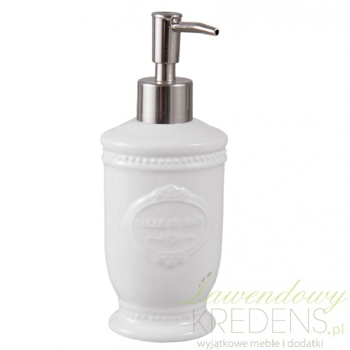 Biały prowansalski i dekoracyjny dozownik do mydła z kolekcji Salle De bain ze srebrną górą!
