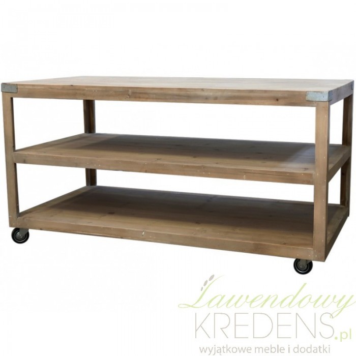 Stół z półkami z kolekcji Scandi Chic to mobilny mebel ustawiony na czarnych kółkach. Piękny kolor i prostota wykonania nadają mu niebagatelnego charakteru.