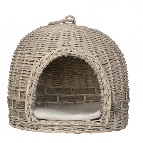 Wyjątkowe legowisko to mebel zaprojektowany z myślą o naszych ukochanych kotach. Wykonany z rattanu, z dbałością o każdy szczegół przypadnie do gustu każdego zwierzaka. Legowisko dla kota w kształcie nory u góry ma zamontowany uchwyt ułatwiający przestawianie. Idealnie wpasuje się do małych pomieszczeń i będzie również ciekawą ozdobą.
