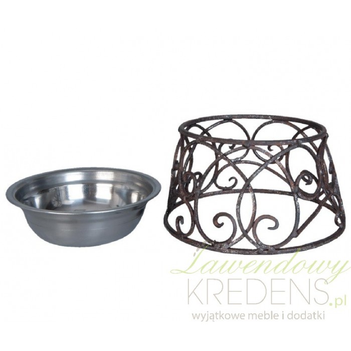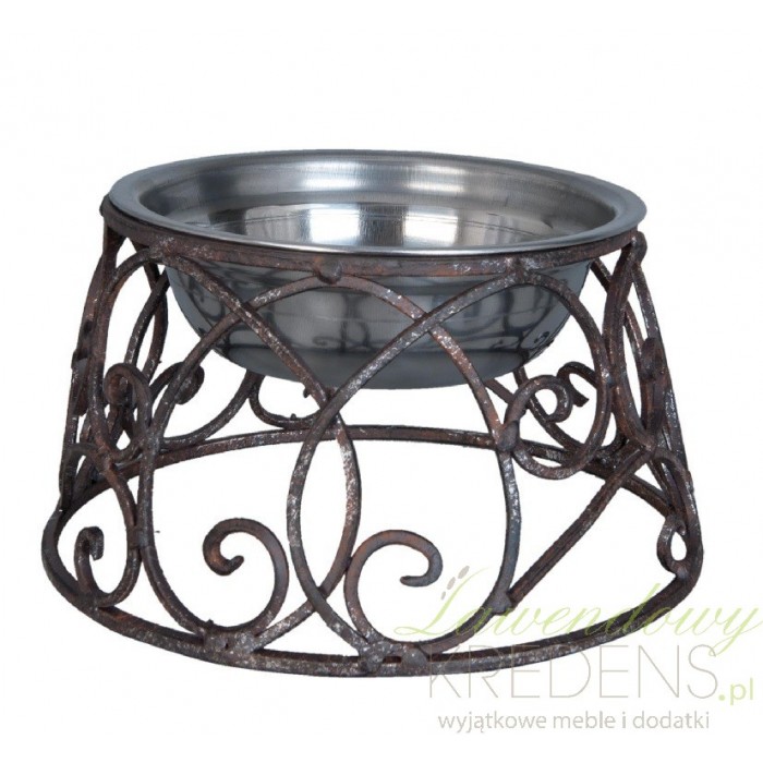 Dodatki w stylu prowansalskim, a wśród nich miska dla psa lub miska dla kota wraz z metalową podstawą sprawią, że podłoga nie będzie zabrudzona ani zalana. Miska jest metalowa, tak samo jak i konstrukcja na której leży. Podstawka jest solidna i trwała i ma ciekawy i finezyjny wzór.