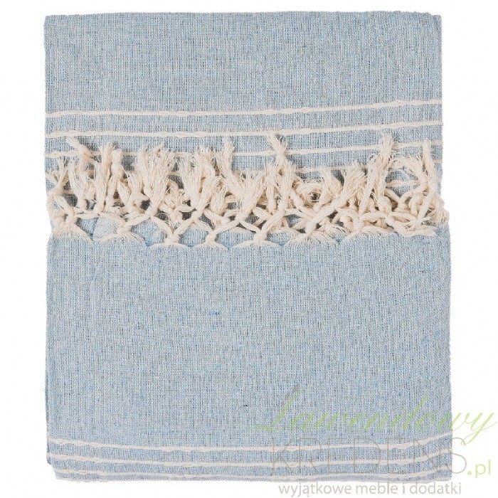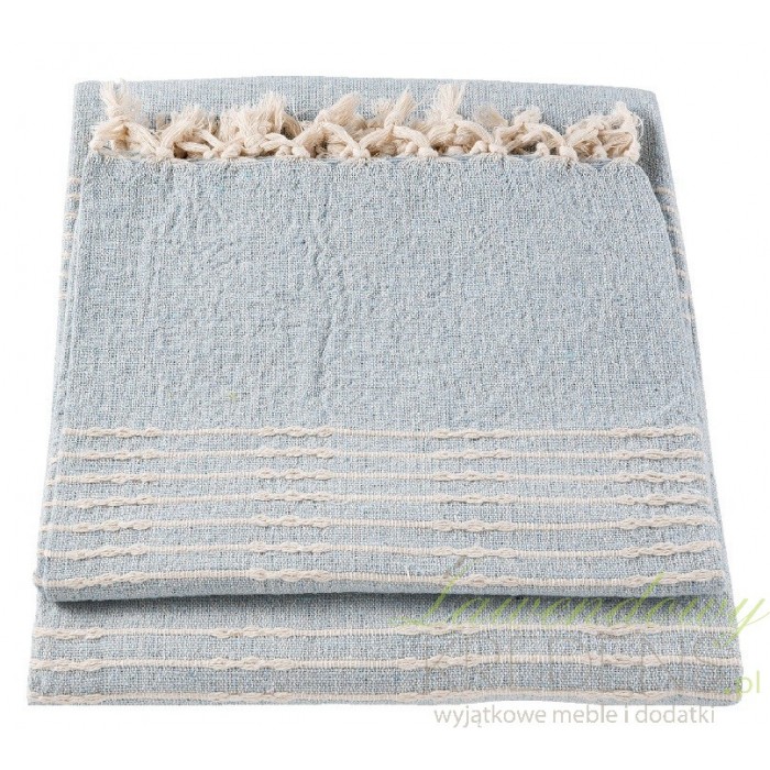 Pled bawełniany w kolorze błękitnym z beżowymi akcentami. Piękny dodatek do salonu lub sypialni jako narzuta na łóżko!