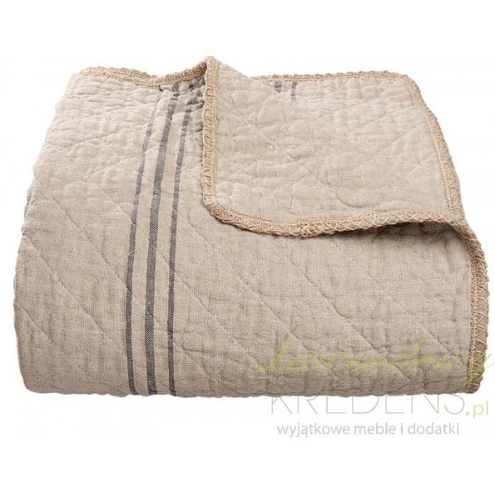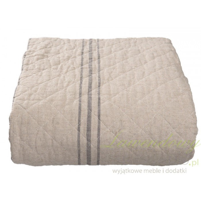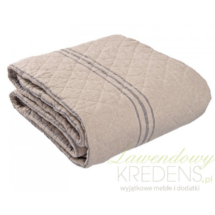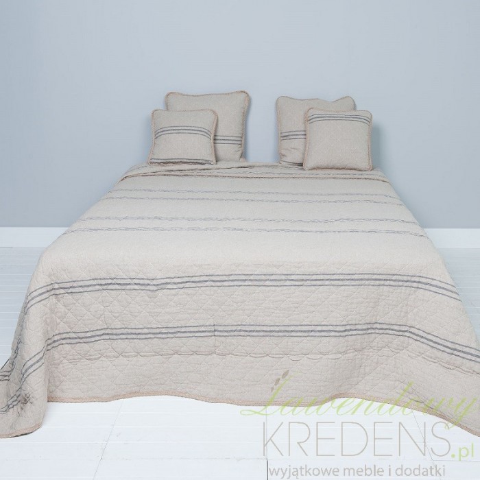 Narzuta na łóżko to bardzo dobre rozwiązanie by okryć swoją pościel ciekawym materiałem i zapobiec jej kurzeniem się czy zabrudzeniom. Narzuta wykonana jest z miękkich materiałów takich jak len oraz bawełna i jest w kolorze beżowym w szare, poziome paski. Narzuty na łóżko- wybierz swój ulubiony kolor oraz wzór i ciesz się piękną dekoracją w swoim pomieszczeniu!