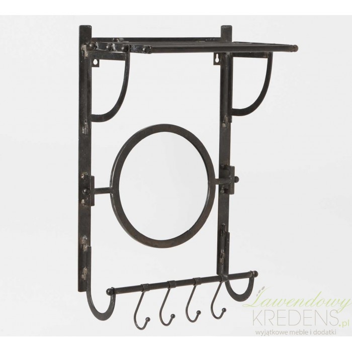 Intrygujące swoim kształtem lustro industrialne z wieszakami i półką to oryginalny oraz wielofunkcyjny dodatek we wnętrzu!
