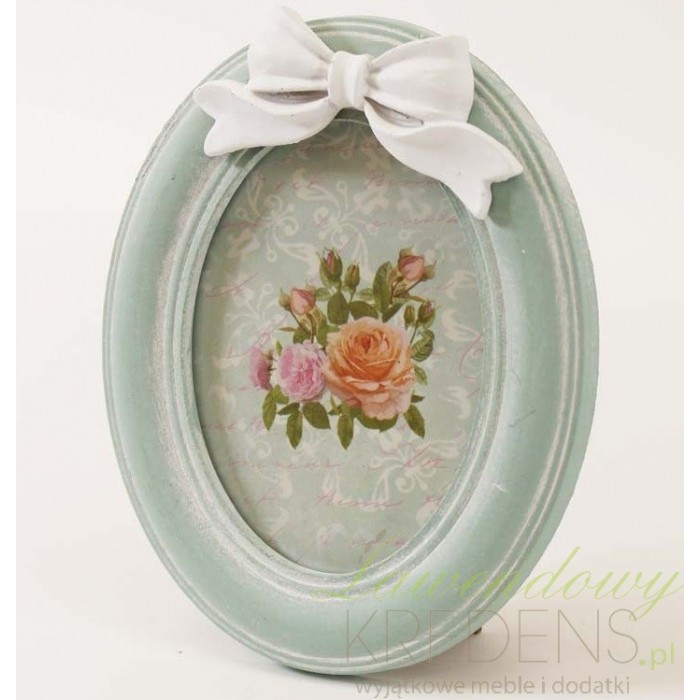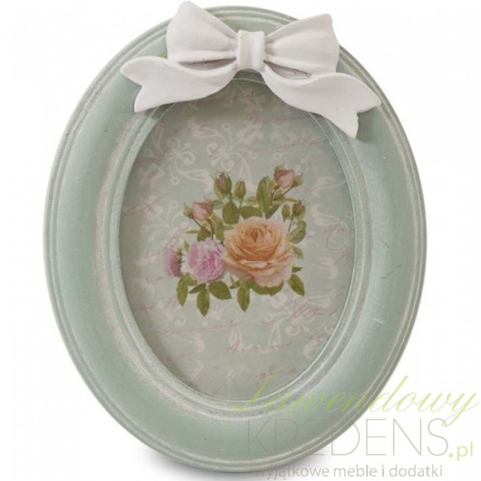 Ramka na zdjęcie to wspaniały pomysł na prezent. Ramka prowansalska ma ciepły zielony kolor i owalny kształt. Posiada śliczną ozdobną białą kokardę u góry i można ją postawić na biurku czy na komodzie. Ramki na zdjęcia to tak upragnione cofnięcie się w czasie.