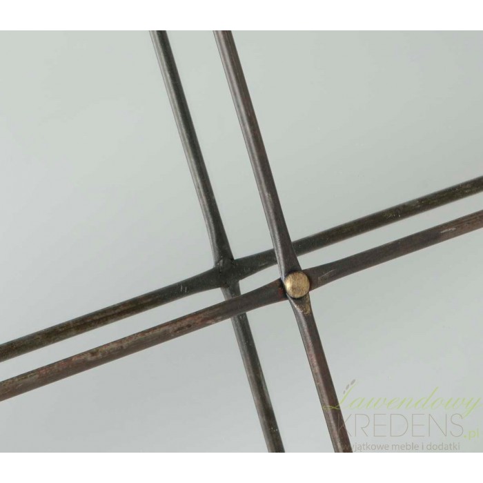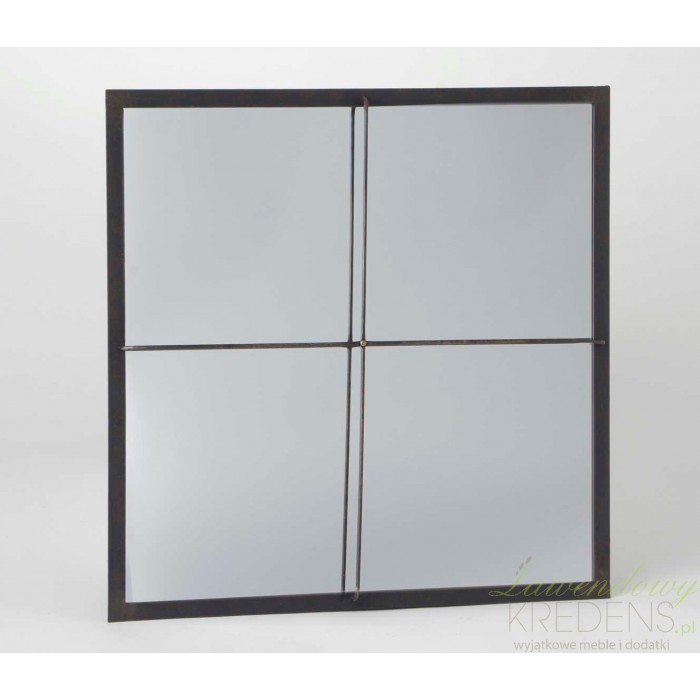 Lustro industrialne francuskiej produkcji to kwadratowe lustro przypominające okno. Lustro okno ma wymiary 71x71cm i grubość 3cm. Charakterystycznym elementem lustra są przechodzące wzdłuż oraz wszerz dwa metalowe pręty, dzielące je na cztery mniejsze kwadraty. Niepowtarzalne lustra w stylu industrialnym to ciekawy dodatek, który doskonale wkomponuje się w nowoczesne wnętrza!
