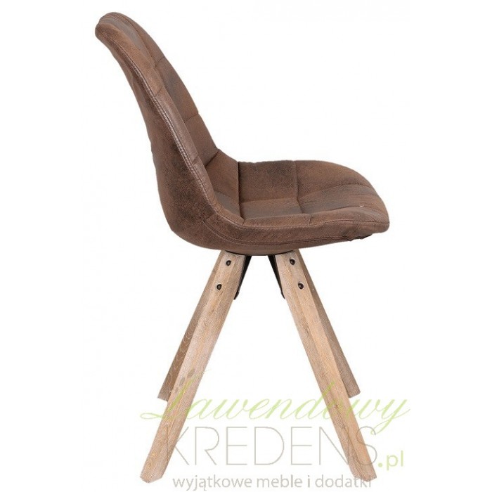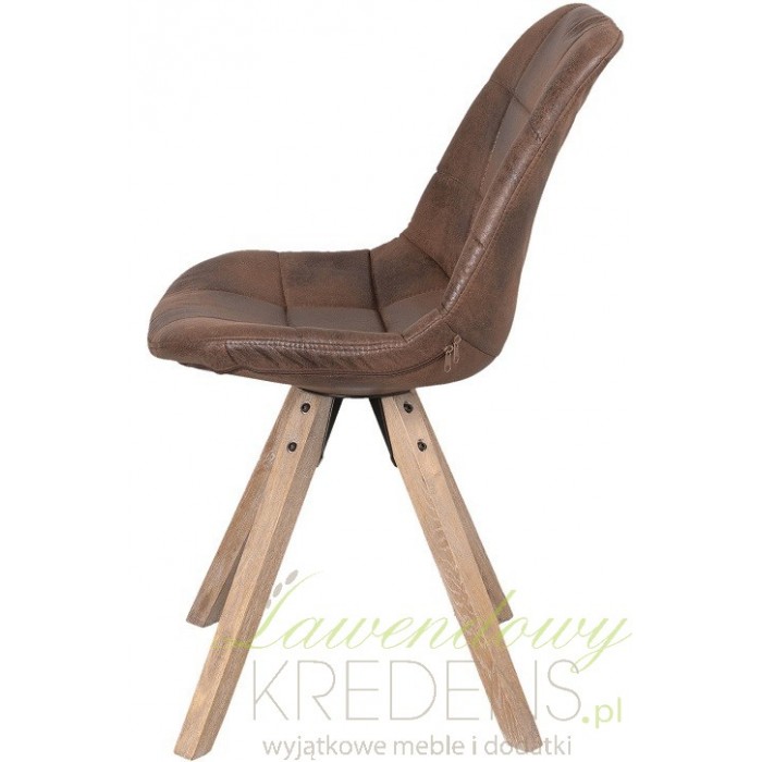Krzesło tapicerowane od Clayre&Eef zostało wykonane z wysokiej jakości drewna i starannie obszyte brązową tapicerką. Ciekawy wygląd mebel zawdzięcza przeszyciom układającym się we wzór kwadratów. Stabilne podparcie krzesła zapewniają cztery proste nogi wychodzące z jednego punktu pod siedziskiem. Krzesła tapicerowane sprawdzą się przy stoliku w skandynawskiej kuchni i w eleganckiej jadalni.