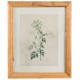 Prostokątny obraz w stylu prowansalskim prezentuje zieloną roślinę na biało-beżowym tle kontrastującym z ramą w kolorze ciepłego brązu.