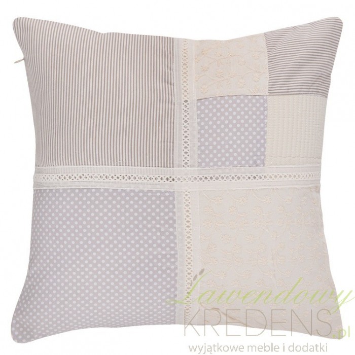 Poszewka prowansalska wykonana została w stylu patchworkowym. Poduszka ozdobna wykonana jest z różnej wielkości i kolorów kwadracików, które stanowią całość. Dzieli je ozdobna tasiemka, która dodaje jej uroku. Poszewki w stylu prowansalskim to idealny wybór do twojego domu.