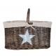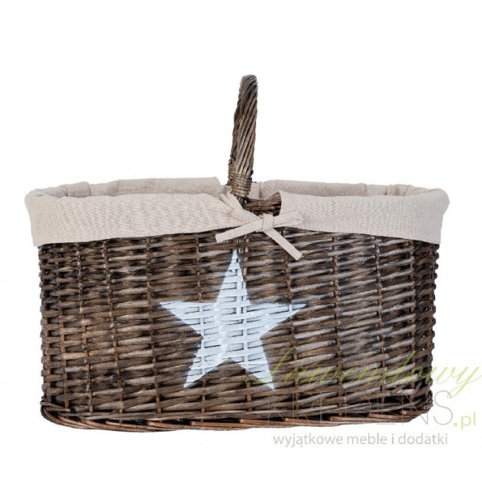 Brązowy kosz wiklinowy z ozdobną białą gwizdką na samym środeczku!