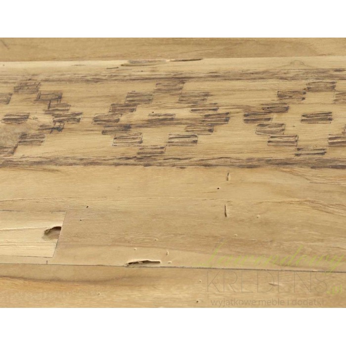 Meble w stylu rustykalnym, sprawią, że Twoje wnętrze stanie się naturalne i klimatyczne. Taboret rustykalny ma ciekawie zdobione siedzisko, na którym naniesiono wzór w romby. Efektownie prezentują się także jego nogi, które łącza u dołu dwie skrzyżowane ze sobą mini belki. Stołek wykonano w całości z drewna z recyklingu.