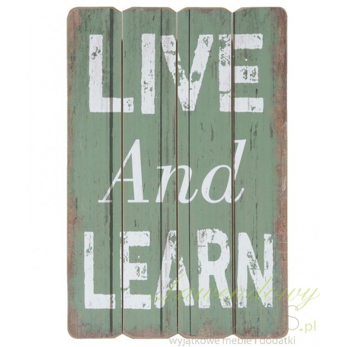 Obraz retro stanowi doskonałą dekorację ściany i przekazuje ważną myśl życiową : żyj i ucz się. Obraz z napisami ma ciepły zielony kolor i białe angielskie napisy. Świetnie będzie wyglądał zarówno w kuchni jak i w pokoju czy łazience. Obrazy w stylu retro to fajna stylowa ozdoba domu.