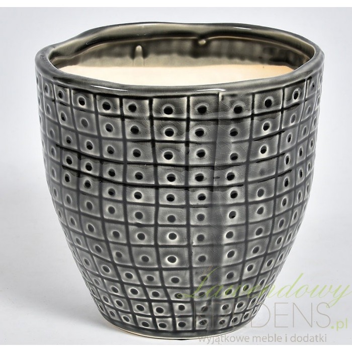 W naszym sklepie z prowansalskimi dekoracjami czekają na Ciebie osłonki w stylu prwansalskim Belldeco świetnie dopasowane do wystroju Twojego mieszkania. Bez znaczenia, czy lubisz wzornictwo francuskie, czy wolisz skandynawski minimalizm, osłonka Belldeco spełni Twoje oczekiwania. Szara osłonka wykonana z ceramiki została ozdobiona wzorem w kółka i kwadraty, oraz delikatnymi spękaniami. Estetyczna, wygodna w użytkowaniu i pasująca do wnętrza i do ogrodu, osłonka Delia genialnie podkreśli walory kwiatów i innych roślin.
