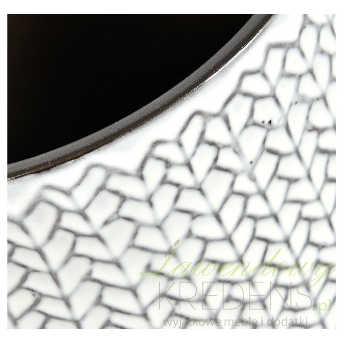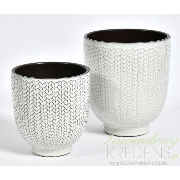 Osłonki Belldeco wykonane są z wysokiej jakości ceramiki. Mają śliczny biały kolor i charakterystyczny wzór przypominający listki. Osłonki na doniczki firmy Belldeco mają okrągły kształt i czarny kolor wewnątrz. Będą cudownie prezentować się na oknie lub balkonie.