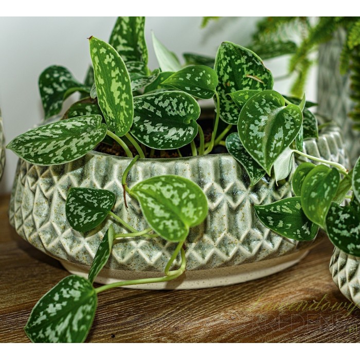 Okrągła misa Belldeco świetnie nadaje się jako osłonka na rośliny, kwiaty oraz zielony mech.