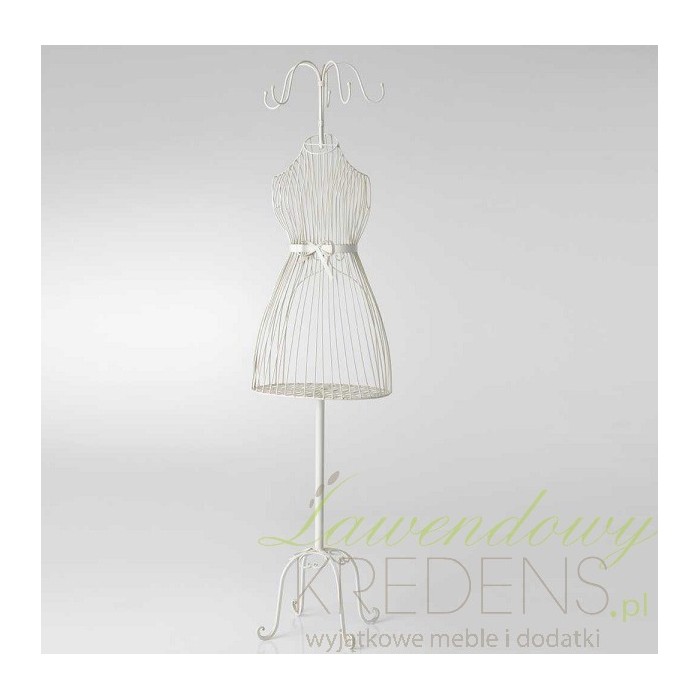 Wieszak prowansalski wykonany jest z dobrej jakości metalu. Przypomina swoim wyglądem manekina a raczej śliczną sukienkę z ozdobną kokardą. Manekin prowansalski stoi na stabilnej białej nodze a u góry ma wiele wieszaczków na kurtki czy torebki. Dodatki w stylu prowansalskim stanowią o twoim charakterze i pasjach.