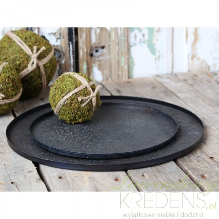 Okrągła taca metalowa firmy Chic Antique z delikatnym wzorem na spodzie!