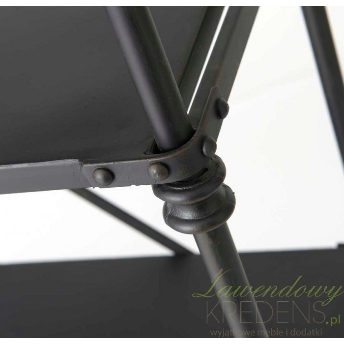 Wysoki i wąski, metalowy regał w stylu loft pochodzenia francuskiego to pomysł na przykuwającą wzrok aranżację butiku lub sklepu.