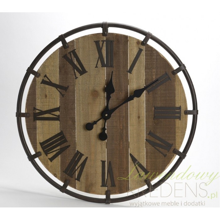 Zegar industrialny został wykonany w ciemnych odcieniach brązu. Zegar ścienny to dodatek na ścianę, którego wykonanie jak przystało na styl industrialny jest solidne i surowe. Tarcza zegara ma pionowe pasy, które wyglądają jak dopasowane deski w różnych kolorach. Wybierając zegary scienne takie jak zegary w stylu industrialnym jesteś o duży krok bliżej do urządzenia modnego wnetrza.