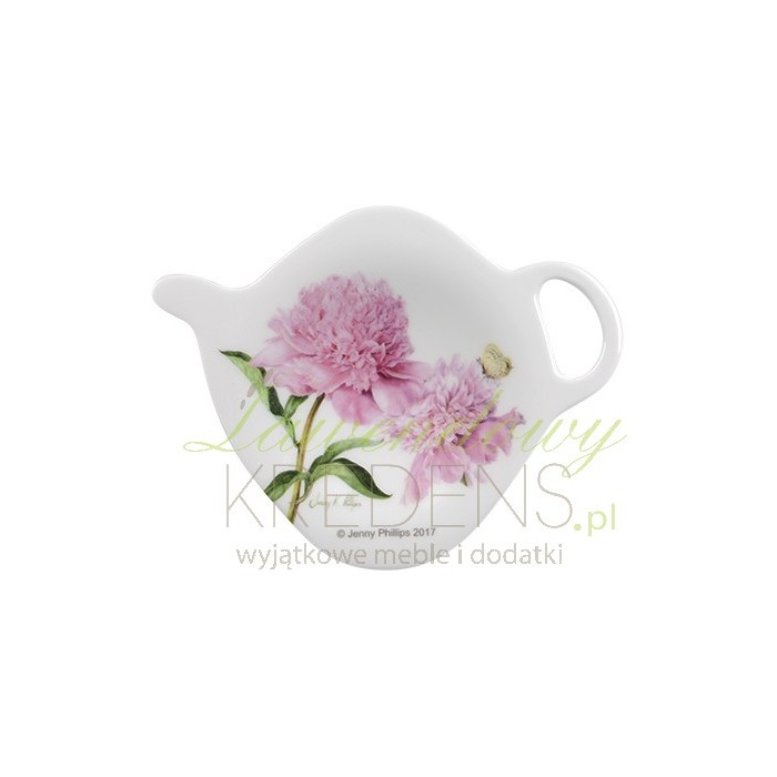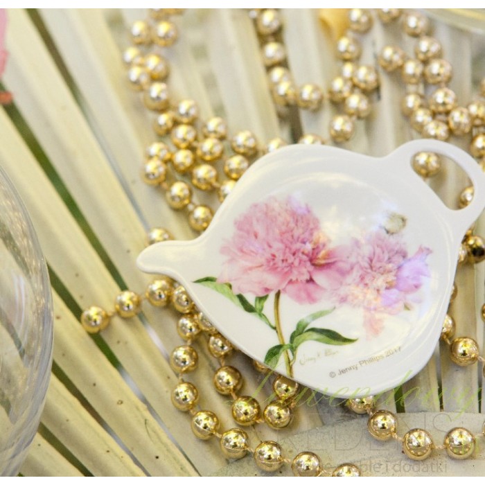 Niezwykle gustowny i elegancki ociekacz na herbatę z dwoma dużymi i różowymi piwoniami!