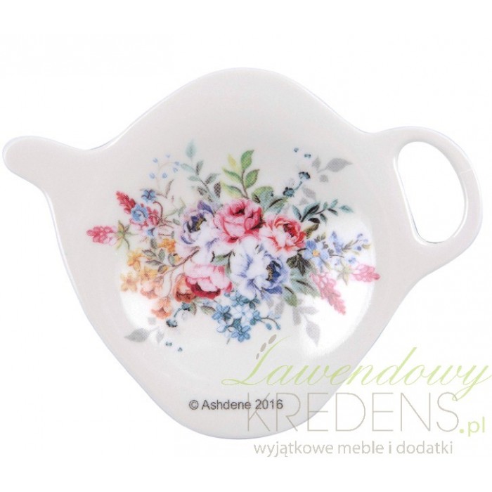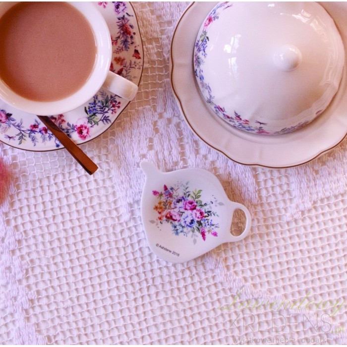 Ociekacz na herbatę wykonany w stylu prowansalskim. Ociekacz ma kształ imbryczka ze wzorem w różnokolorowe kwiaty i jest z melaminy. Ten gadżet będzie idealny dla miłośnika herbaty. Ociekacz zapobiegnie powstawaniu plam na stole lub biurku. Dodatki prowansalskie są piękne i praktyczne. Nie może ich zabraknąć w Twoim pomieszczeniu!