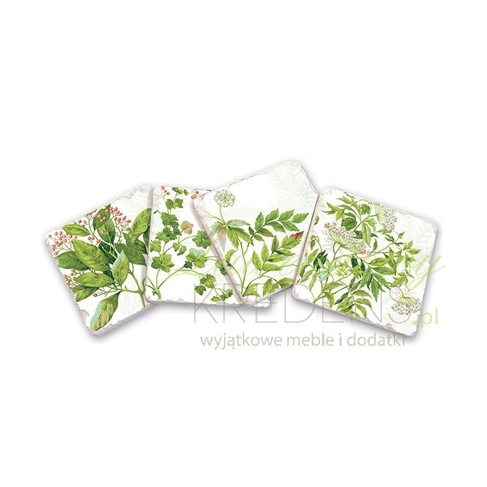 Podkładki pod kubek przydadzą się podczas spotkań rodzinnych czy po prostu przy piciu gorących napojów. Podkładki stołowe mają kwadratowy kształt i są w ilości czterech sztuk. Każda z podkładek ma inny wzór przedstawiający inną roślinkę. Są również zapakowane w eleganckie pudełko.