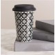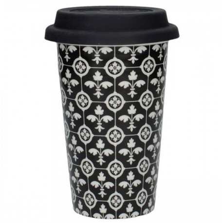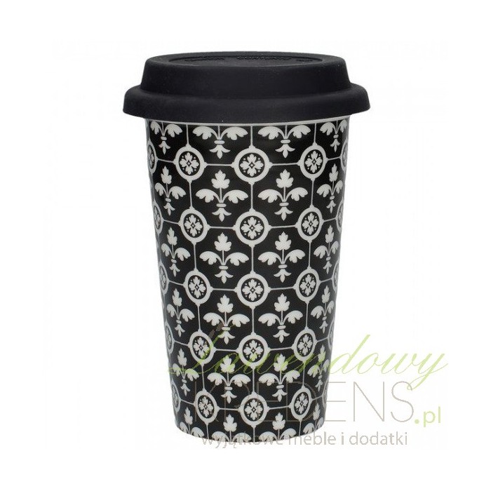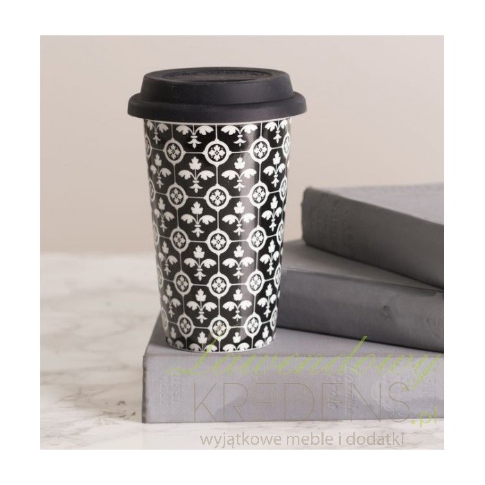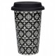 Kubek podróżny ma czarno-biały kolor i ciekawy wzór. Wykonany jest z wysokiej klasy porcelanyi ma silikonową pokrywkę. Kubki podróżne mają podwójną ściankę porcelany, która długo utrzymuje ciepło.