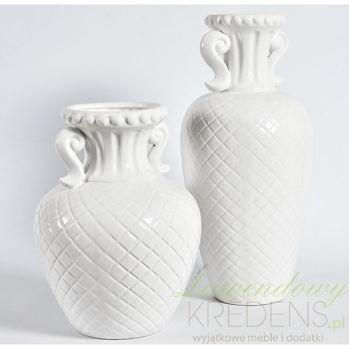 Prawdziwie romantyczny wazon prowansalski w romby z kolekcji Belldeco wyróżnia się przede wszystkim oryginalnym i niespotykanym kształtem. Wykonany został z ceramiki i pomalowany na biało z delikatnym połyskiem. Urocze wykończenie zwężonej u góry części wazonu sprawia, że taki dodatek do wnętrza wyeksponuje pięknie sztuczne i żywe kwiaty. Wzony w romby sa dostępne w różnych rozmiarach zatem masz możliwość skomponowania unikatowej kolekcji antycznych wazonów, tylko u nas!