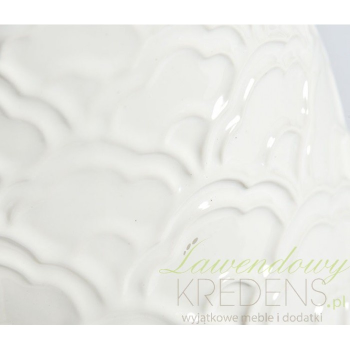 Wazon prowansalski firmy Belldeco ma biały kolor i ciekawy acz charakterystyczny kształt. Ma wspaniały i delikatny wzór, który nadaje mu elegancji i wytworności. Osłonki w styl prowansalskim świetnie będą wyglądać na stole podczas rodzinnych uroczystości i nie tylko.