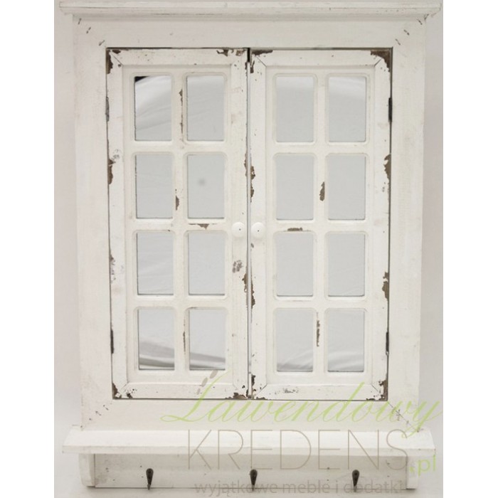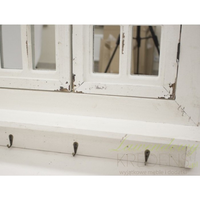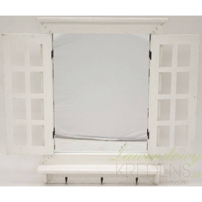 Białe, prowansalskie lustro z okiennicami i trzema wieszaczkami!